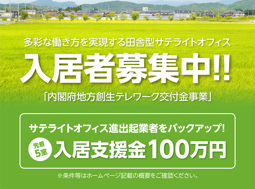 新しい生活様式の中、テレワークを中心とした働き方に対応し、地方でオフィスを探されている方、農業や工業の町といわれる竜王町での関連事業の方などにピッタリの立地条件です。「テレワーク」、「リモート」、「在宅勤務」、「サテライトオフィス」に対応した郊外型オフィスとコワーキングスペースを準備しました。